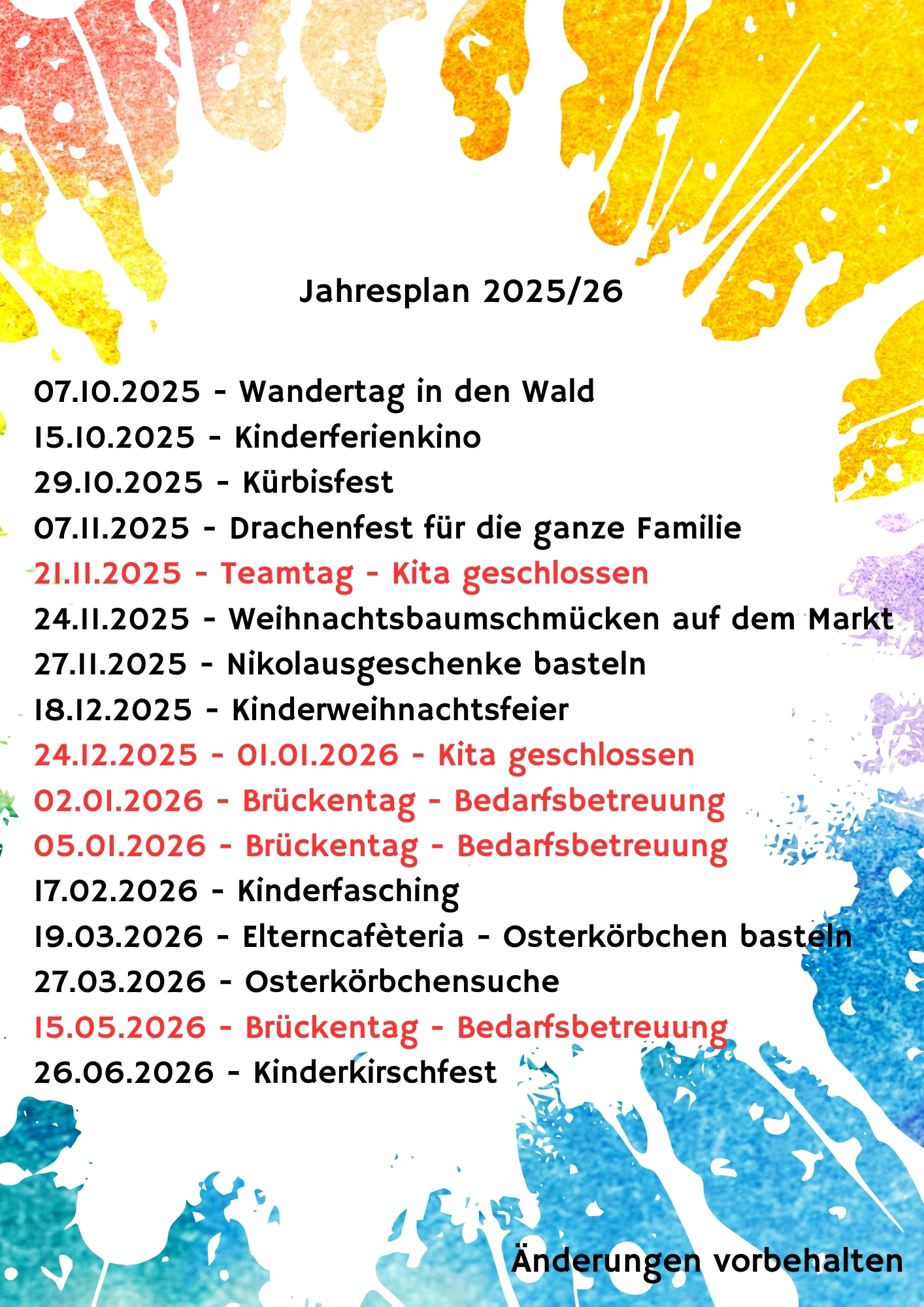 Unsere Kindertagesstätte hat ganzjährig geöffnet.